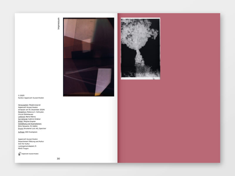 Medium: Dreiteilige, handliche Publikation, bestehend aus einer zweifach aufklappbaren Hülle, einem klebegebundenen Handbuch mit offenem Rücken (sichtbare schwarze Leimung, optimales Aufschlagverhalten) sowie einem grösseren, gefalteten Magazin (dünnes gestrichenes Papier, mit schwarzen Klammern geheftet).