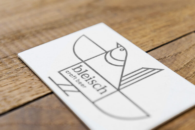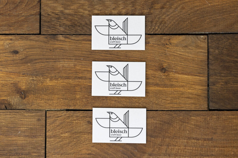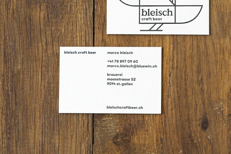 Weitere Anwendungen: Das Sujet wurde von Bleisch Craft Beer als Logo auf seiner Visitenkarte weiter verwendet (Satz: Studio Erni)