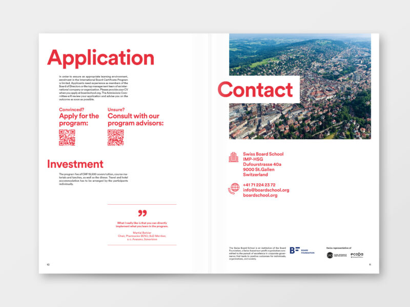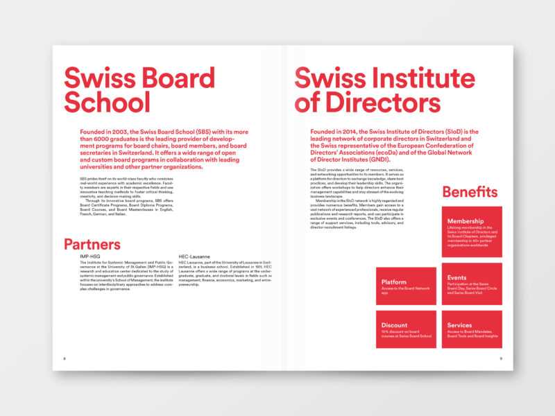 Ausgangslage: Die gemeinnützige Schweizer Stiftung arbeitet in der Ausbildung, Vernetzung und Forschung in Themenfeldern von Verwaltungsrätinnen und -räten. Unter der Hauptmarke werden drei Unterbrands geführt, die Swiss Board School, das Swiss Institut of Directors und das International Center For Corporate Governance.