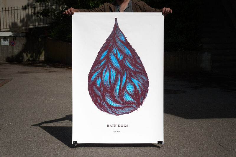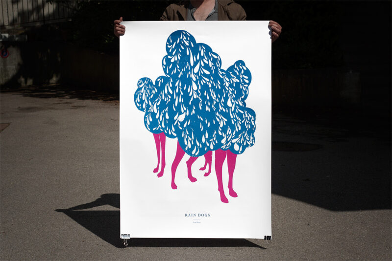 Die zwei Plakate «Rain Dogs» sind freie Arbeiten zum gleichnamigen Liedtitel von Tom Waits.