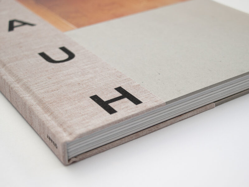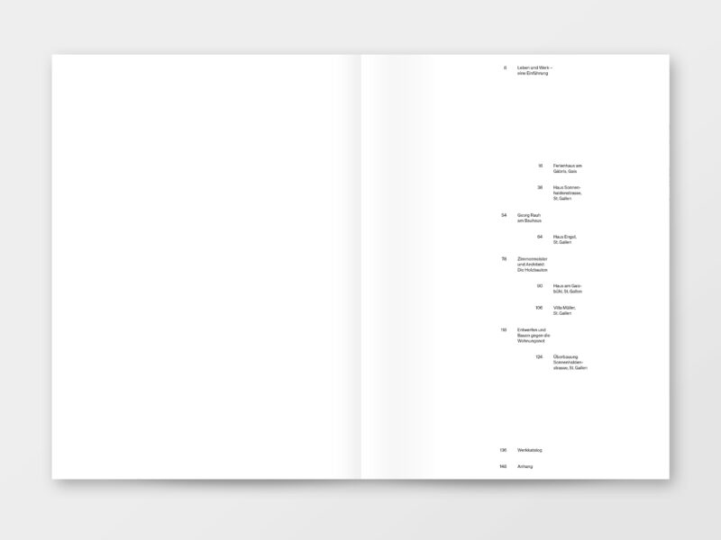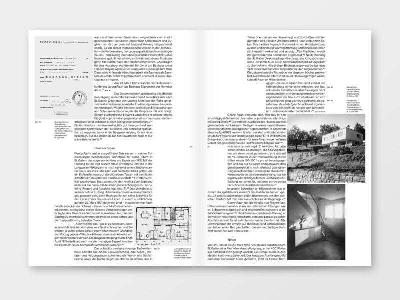 Gestaltung: Um dem Chakter des Architekten zu entsprechen wurden unaufgeregte, natürliche Materialien verwendet. Der Umschlag zeigt den handwerklichen Aufbau eines Buches. Für das Layout-Konzept wurden grafische Prinzipien aus der Zeit des Bauhauses neu interpretiert.