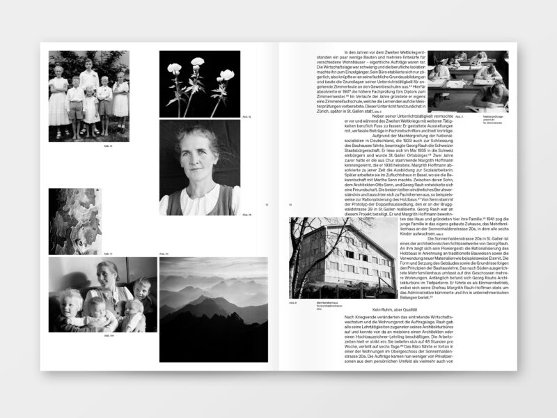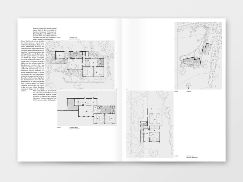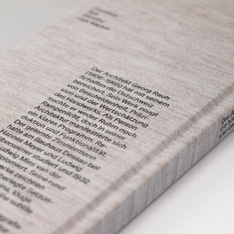 Thematik: Das Werk des Architekten Georg Rauh (1906–1965) zeugt von Bescheidenheit, Präzision und der Sorge fürs Handwerk. Er hatte am Bauhaus Dessau studiert, in seinem Schaffen manifestierte sich ein entsprechend klares Programm: Reduktion und Funktionalität. Rauhs Bauwerke zeichnen sich durch überlegte Setzungen der Volumina, kluge Grundrisse und eine subtile Materialwahl aus.