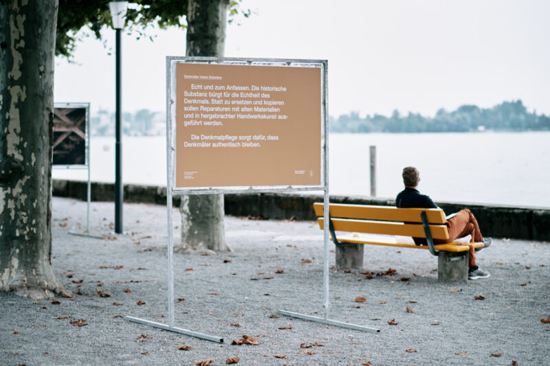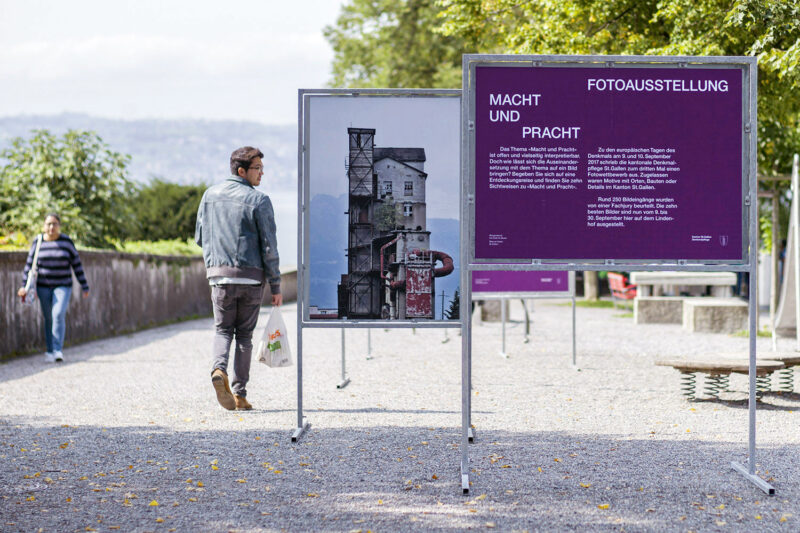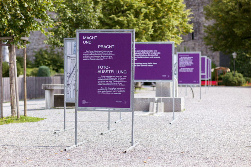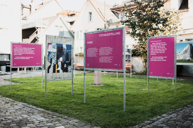 Gesamtkommunikationsmandat für die Denkmalpflege St.Gallen. Der Auftrag umfasst den strategischen Teil, die wiederkehrende Gestaltung diverser Drucksachen sowie die Ausstellungsgestaltung in wechselndem Umfeld.