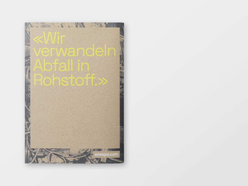 Konzept/Gestaltung: Zur visuellen Übersetzung der Thematik «Kreislaufwirtschaft» werden verschiedene Recycling-Papiere kombiniert. Insbesondere der mit Deckweiss bedruckte Umschlag ist ein zentrales gestalterisches Element und macht das Material aus 100% Altpapier bewusst sichtbar.