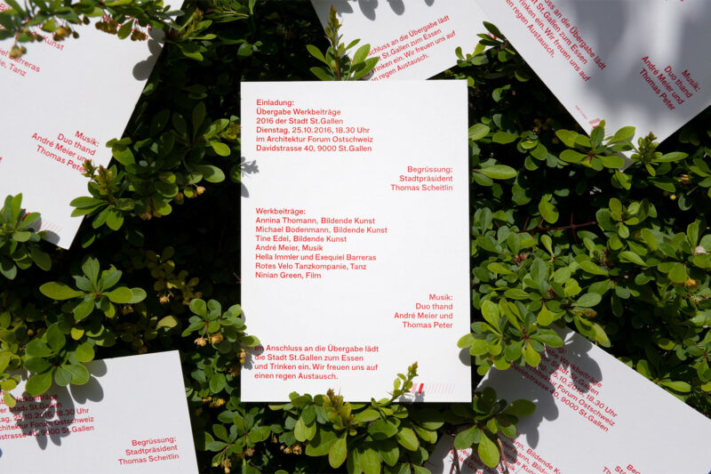 Einladungskarte zur Übergabe der städtischen Werkbeiträge 2016. Risographie.
