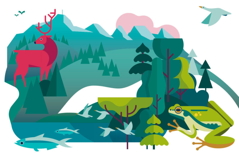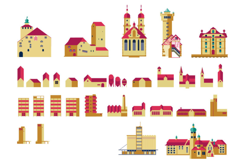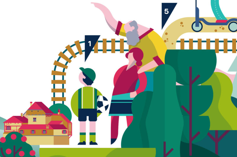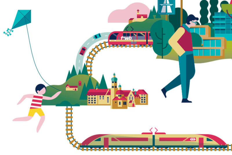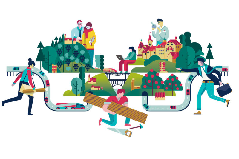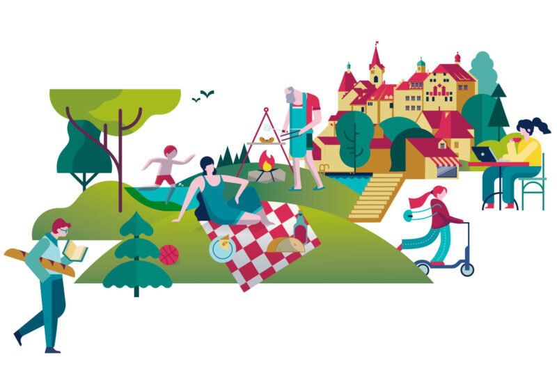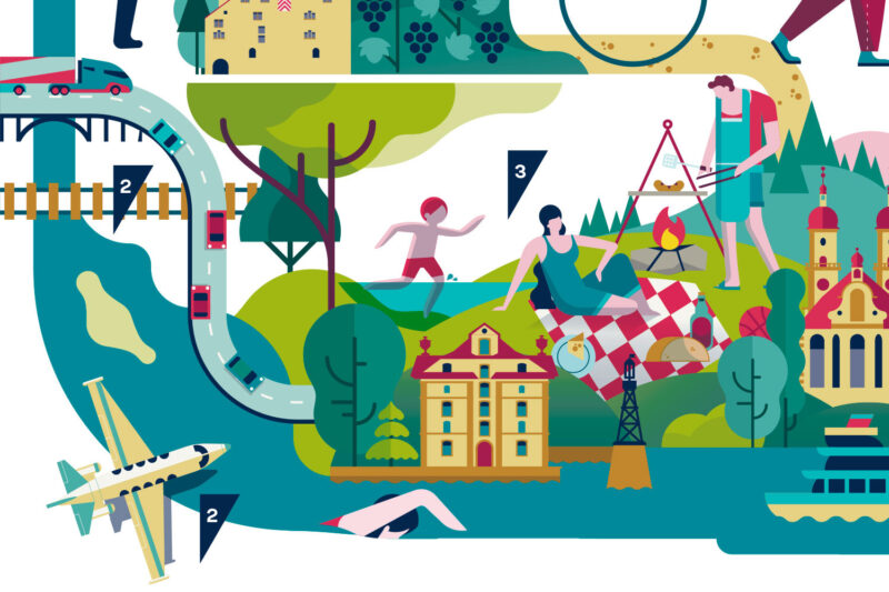 Gestaltung: Kampagnen-Illustration mit modularem Aufbau – die einzelnen Sujets können zu Themen-Clustern kombiniert werden.