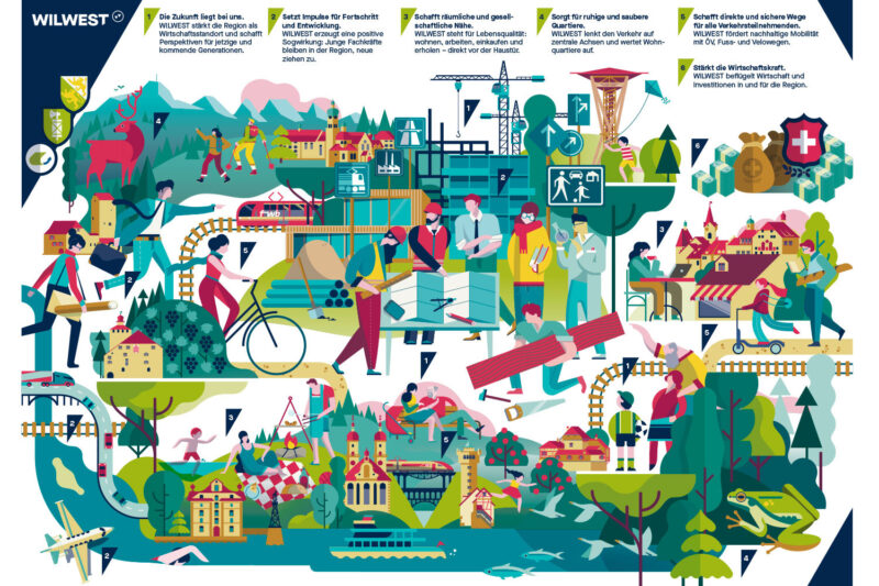 Ausgangslage: Das Gebiet im Westen von Wil soll zu einem Wirtschaftsstandort ausgebaut werden und ein neuer Autobahnanschluss die Region entlasten. Eine Infokampagne von Regio Wil.