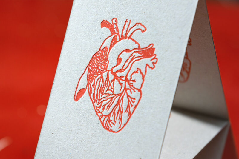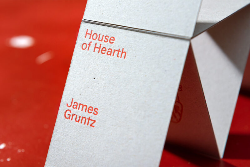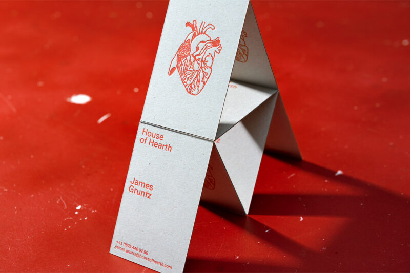 Visitenkarte für das Musiklabel House of Hearth: Die Typografie besticht durch starke Reduktion und subtile Detaileingriffe. Der Druck im Bleisatzverfahren verleiht der Karte eine spürbare Prägung und handwerkliches Flair.