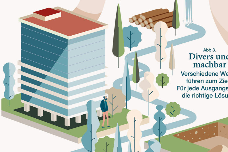 Konzept/Gestaltung: Ermittlung von Themenclustern an einem vorgängigen Workshop, Konzeptentwicklung «Hand der Tat», Stilfindung und Umsetzung als isometrische Vektor-Illustration.