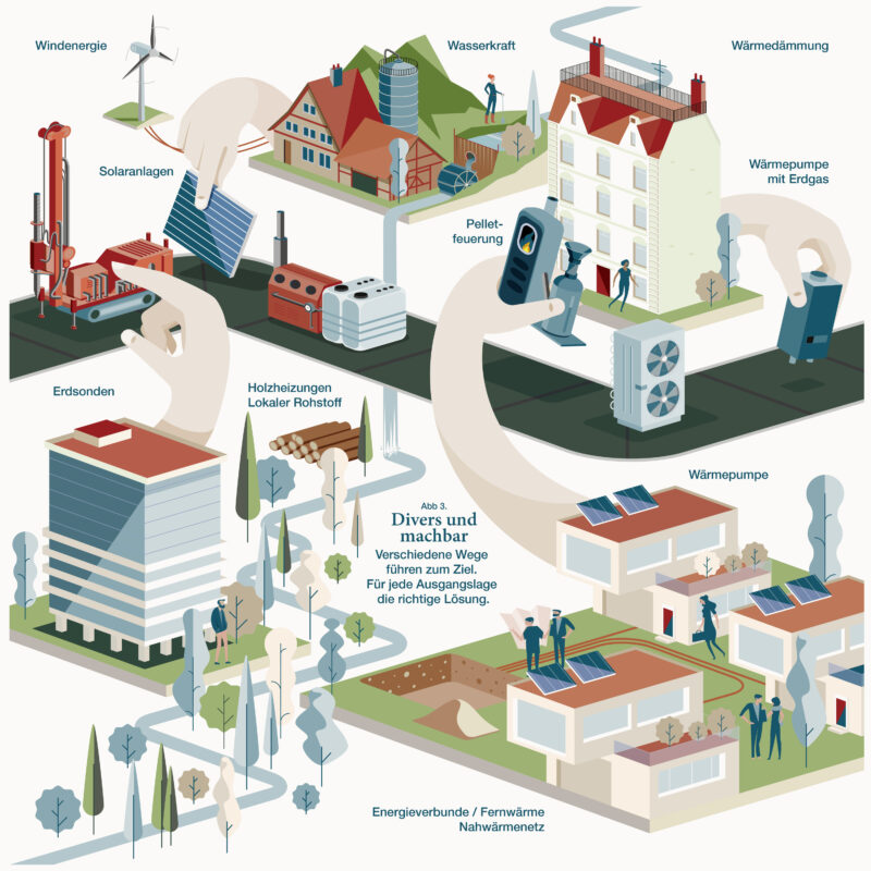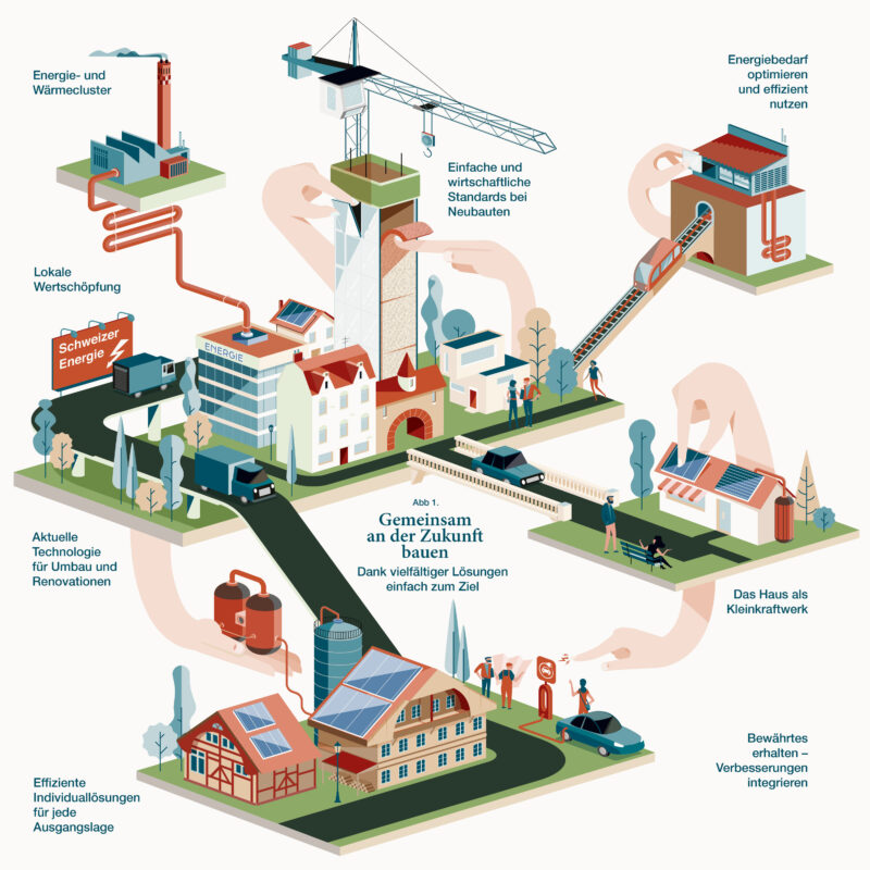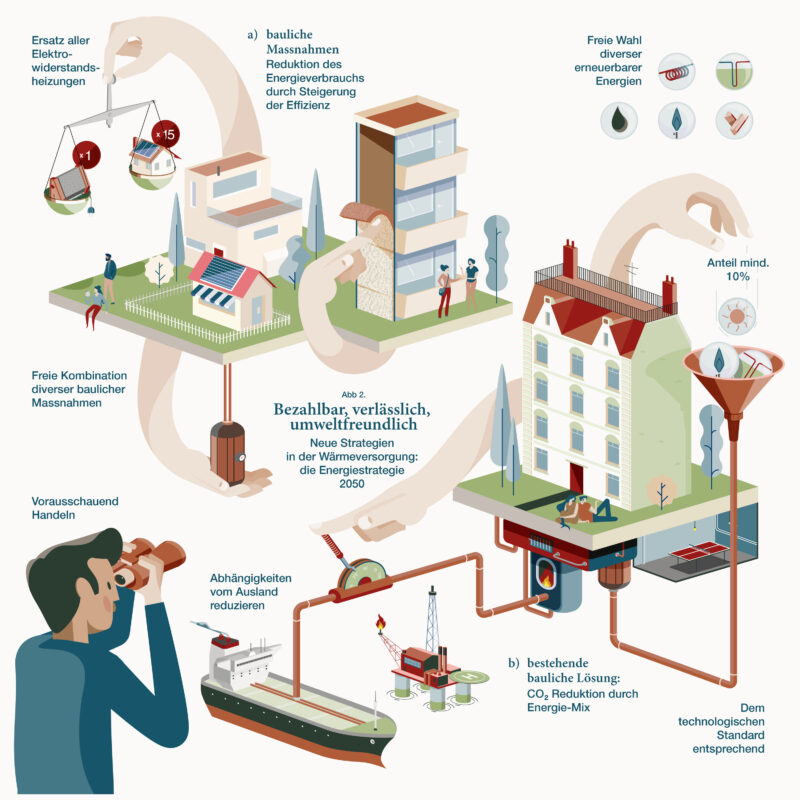 Auftrag: Die komplexen Sachverhalte der Energiestrategie 2050 mittels fünf illustrierten Infografiken zugänglich machen.