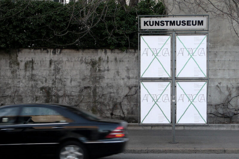 Das Buch erschien während der Ausstellung Attacca im Museum für Gegenwartskunst in Basel. Für die Ausstellung haben wir ausserdem Plakat und Einladung gestaltet.