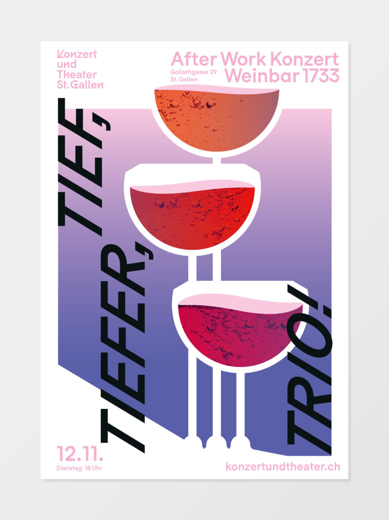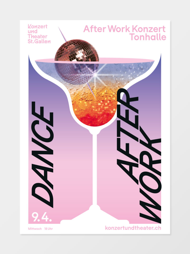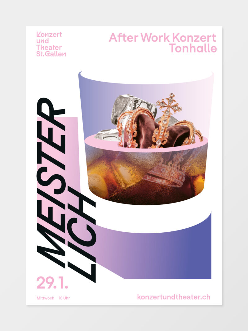 Thematik: Zweite Saison im neuen visuellen Auftritt. Teil der Spielzeitkampagne 24/25 waren die beiden Veranstaltungsreihen After Work Konzert und Lunch-Konzert.
