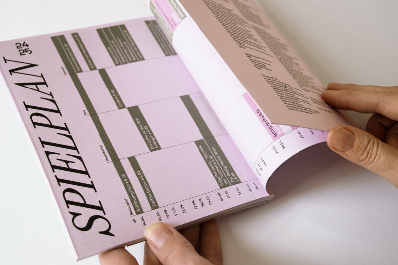 Das Motto der Spielzeit 24/25 Wunsch und Wirklichkeit wurde mit einer sanften Farbpalette auf leicht rosa Grund und einem neuen grafischen Stil etabliert.