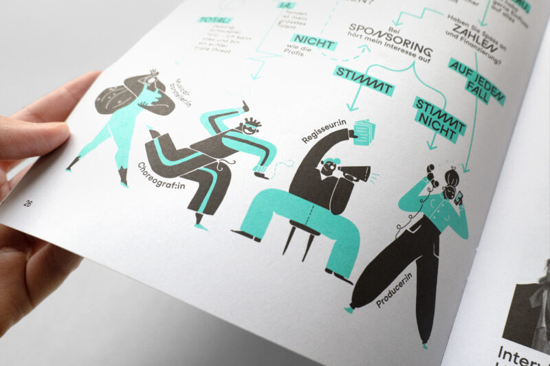 Ergänzt wurde das Layout mit zweifarbigen Kleinillustrationen und Grafiken. Der Stil der Illustrationen wechselt passend zum jeweiligen Saisonstil.