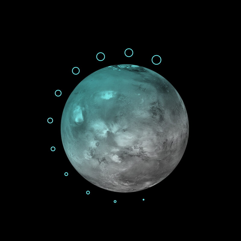 Die Illustrationen sind Teil eines Gesamtauftrags: eine Basis bildet der visuelle Auftritt, zu Einsatz kommen die Planeten auf der Website, diversen Flyer, einem Rollup sowie in den Broschüren und im Handbuch.