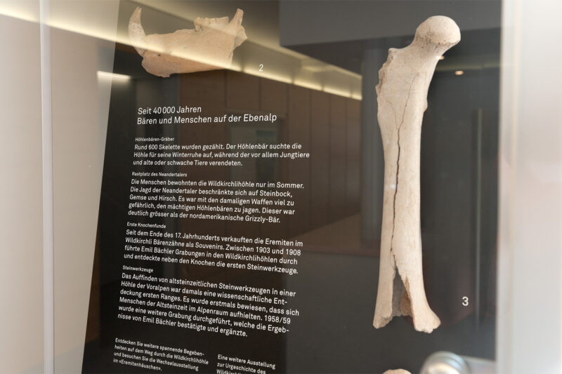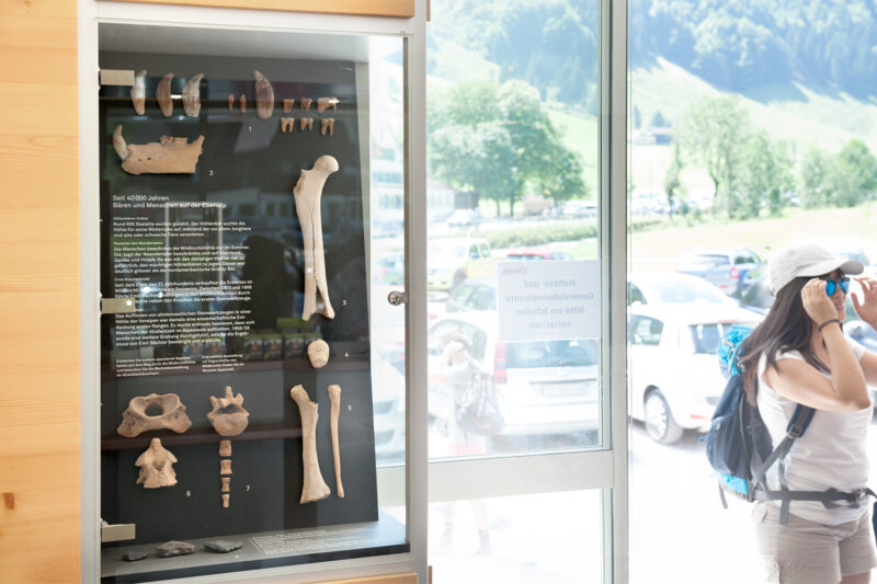 Teil eines umfassenden Projektes war eine Auffrischung des Schaukastens in der Talstation, sowie der Zurschaustellung des Bärenskeletts in der Bergstation.
