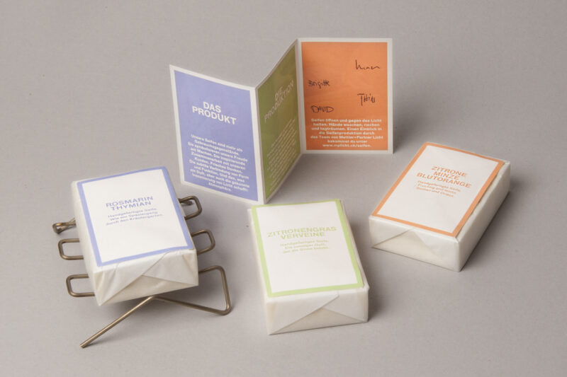 Auftrag: Konzeptentwicklung von Farbe, Form, Duft und Verpackung eines Seifen-Trios.