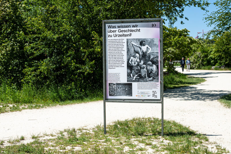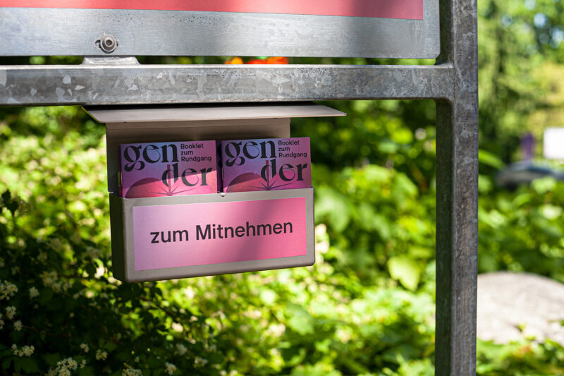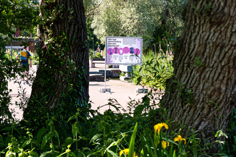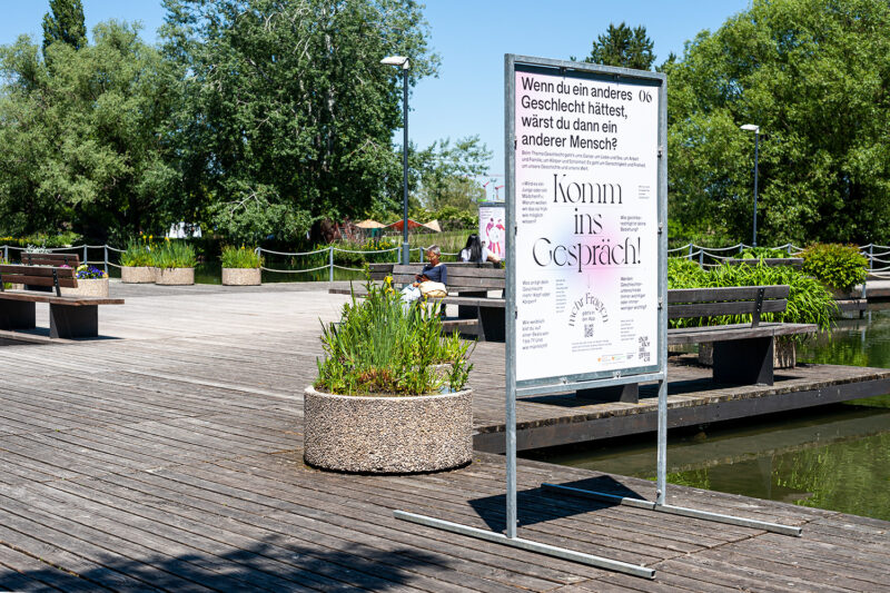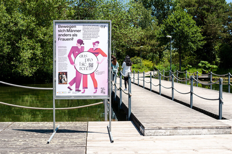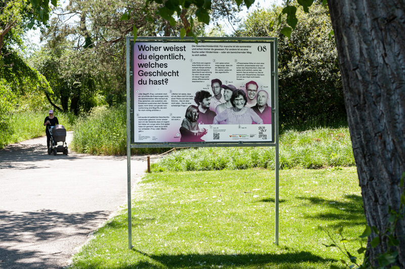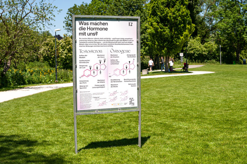 Auftrag: 13 auf dem Spazierweg im Park verteilte Stationen setzen sich mit verschiedenen Aspekten der Thematik «Geschlecht» auseinander.