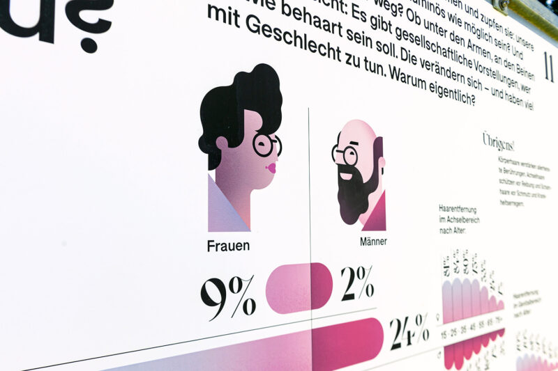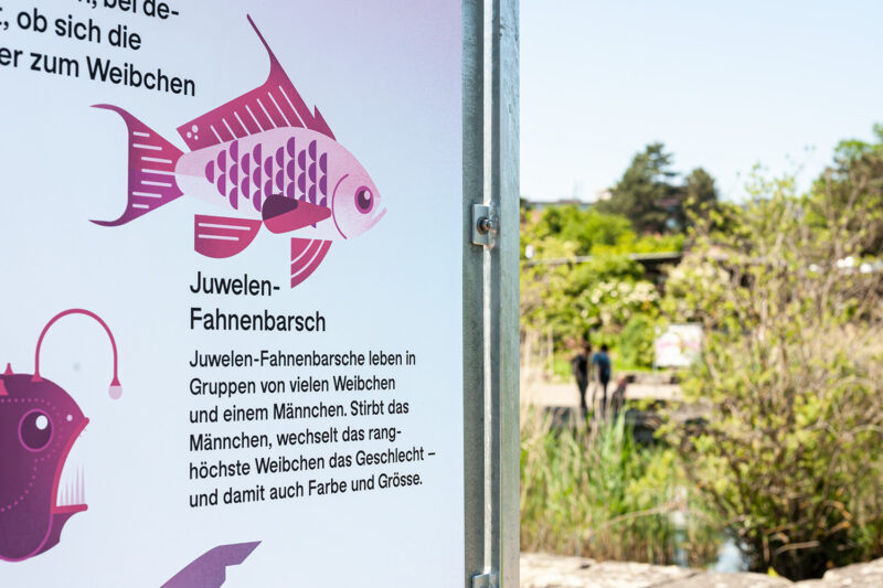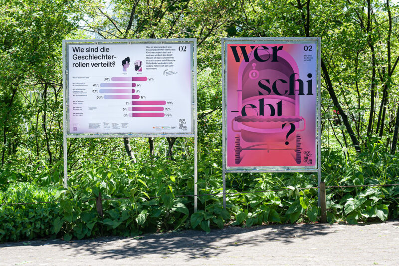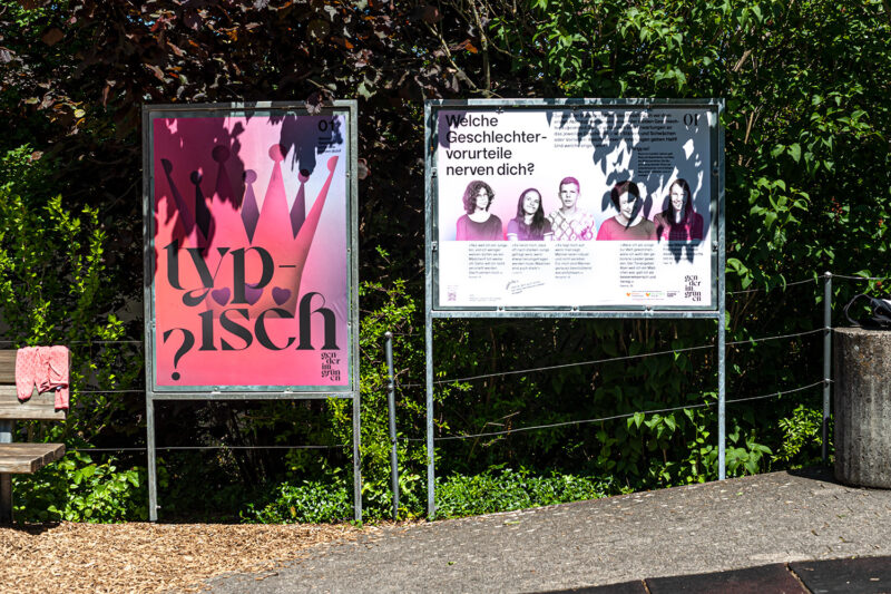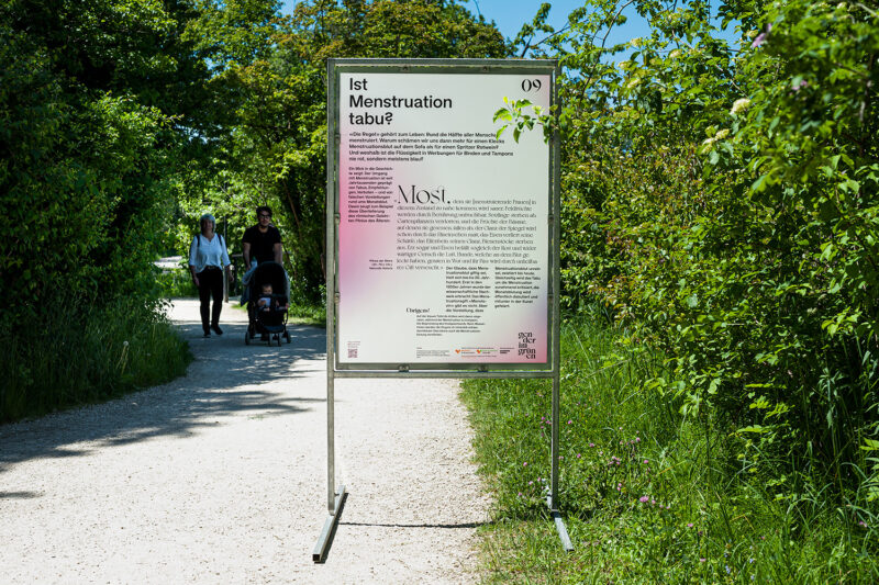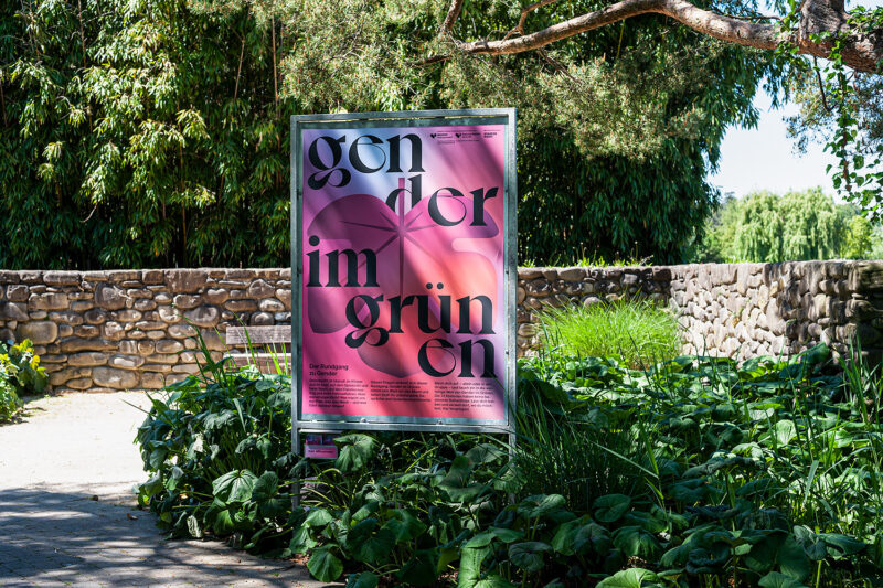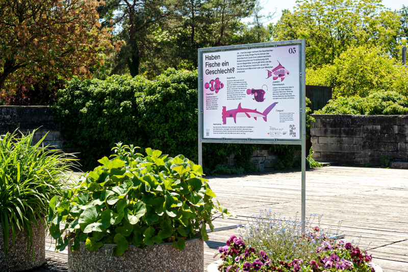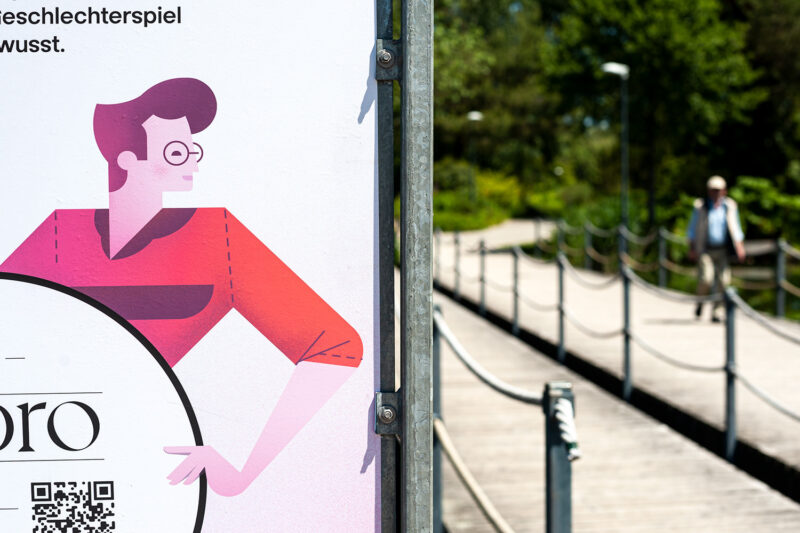 Auftrag: 13 auf dem Spazierweg im Park verteilte Stationen setzen sich mit verschiedenen Aspekten der Thematik «Geschlecht» auseinander.