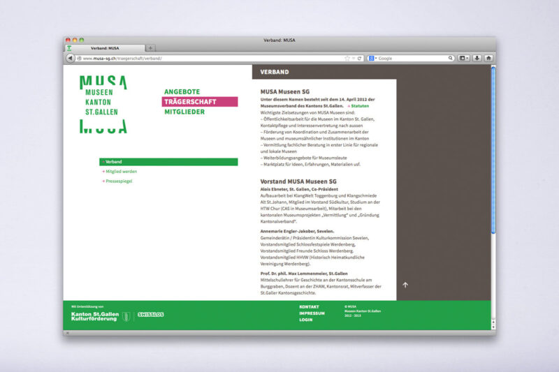 Medien: Logo, Visitenkarten, Briefschaften, Newsletter und eine Website, die neben Dienstleistungen für Museen und Institutionen auch einen visuellen Überblick und Linkverzeichnis aller Mitglieder im Kanton beinhaltet.