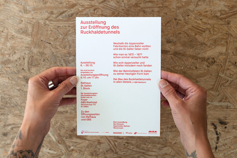 Ausgangslage: Ausstellung Vom Fuhrwerk zum Ruckhaldetunnel: Wie die Appenzeller Fabrikaten zu einer Bahn kamen, anlässlich der Eröffnung des Ruckhaldetunnels in St.Gallen.