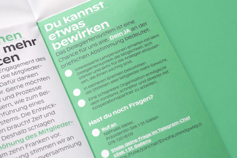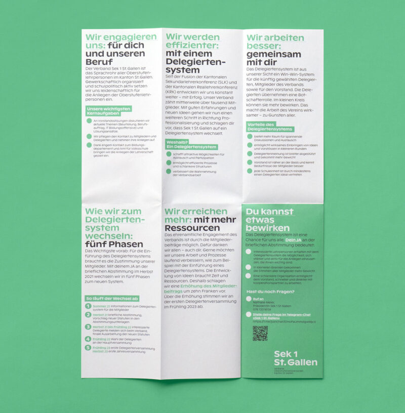 Mittels eines Faltflyers wurde die Reorganisation des Verbands bei den Mitgliedern bekannt gemacht und diese zum Mitmachen motiviert. Der Flyer wurde als Mailing versendet, die Bildseite auch als Plakat aufgehängt.
