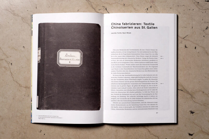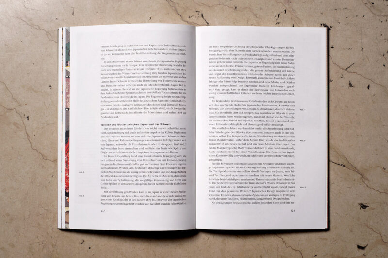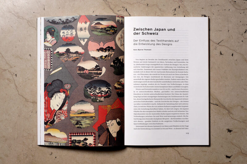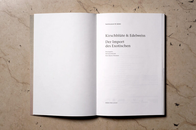 Zu jeder Ausstellung im Textilmuseum entsteht eine gleichnamige Publikation. Die Serie im selben Layout ist hier am Beispiel von Kirschblüten & Edelweiss zu sehen.
