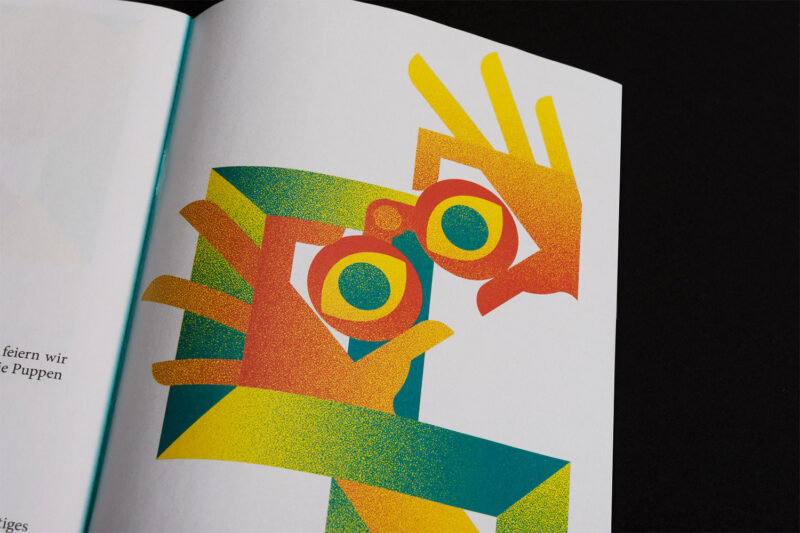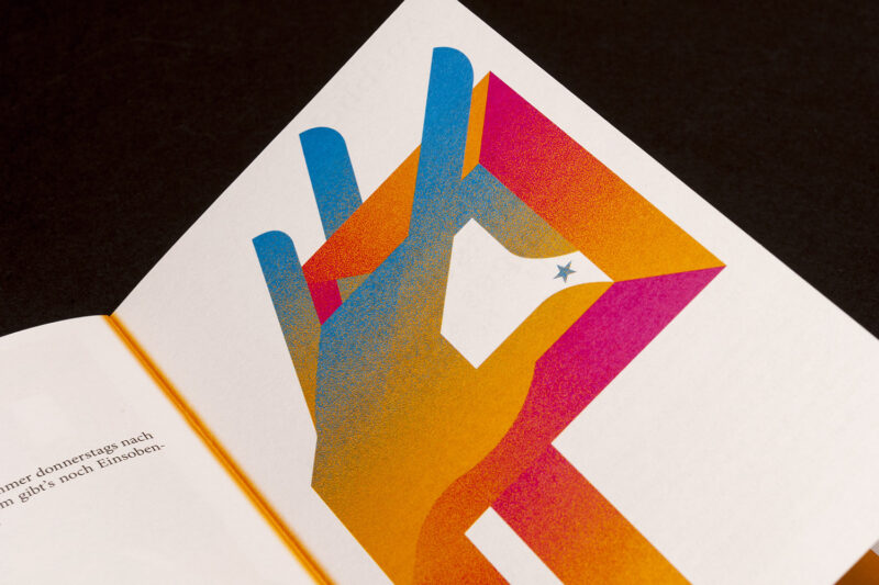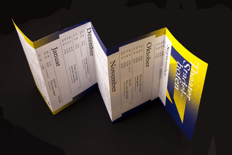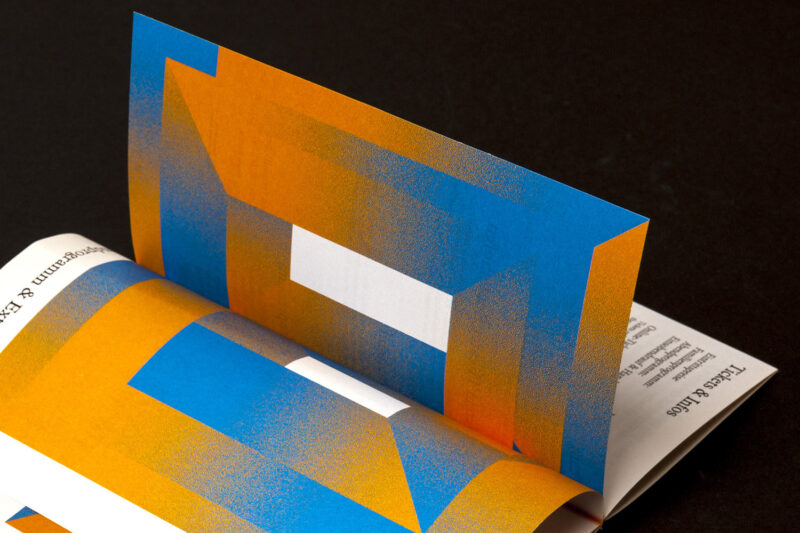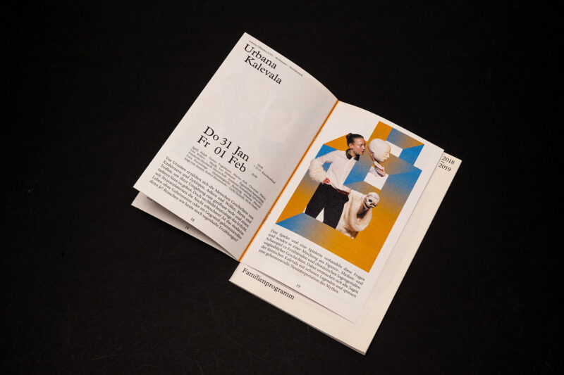 Gestaltung: Das Programmheft setzt auf eine klare Gliederung. Die Veranstaltungsreihen sind auf einen Griff zugänglich, da sich das Heft aus drei verschiedenen Formaten zusammensetzt. Dafür entwickelten eine neue Bindeart.