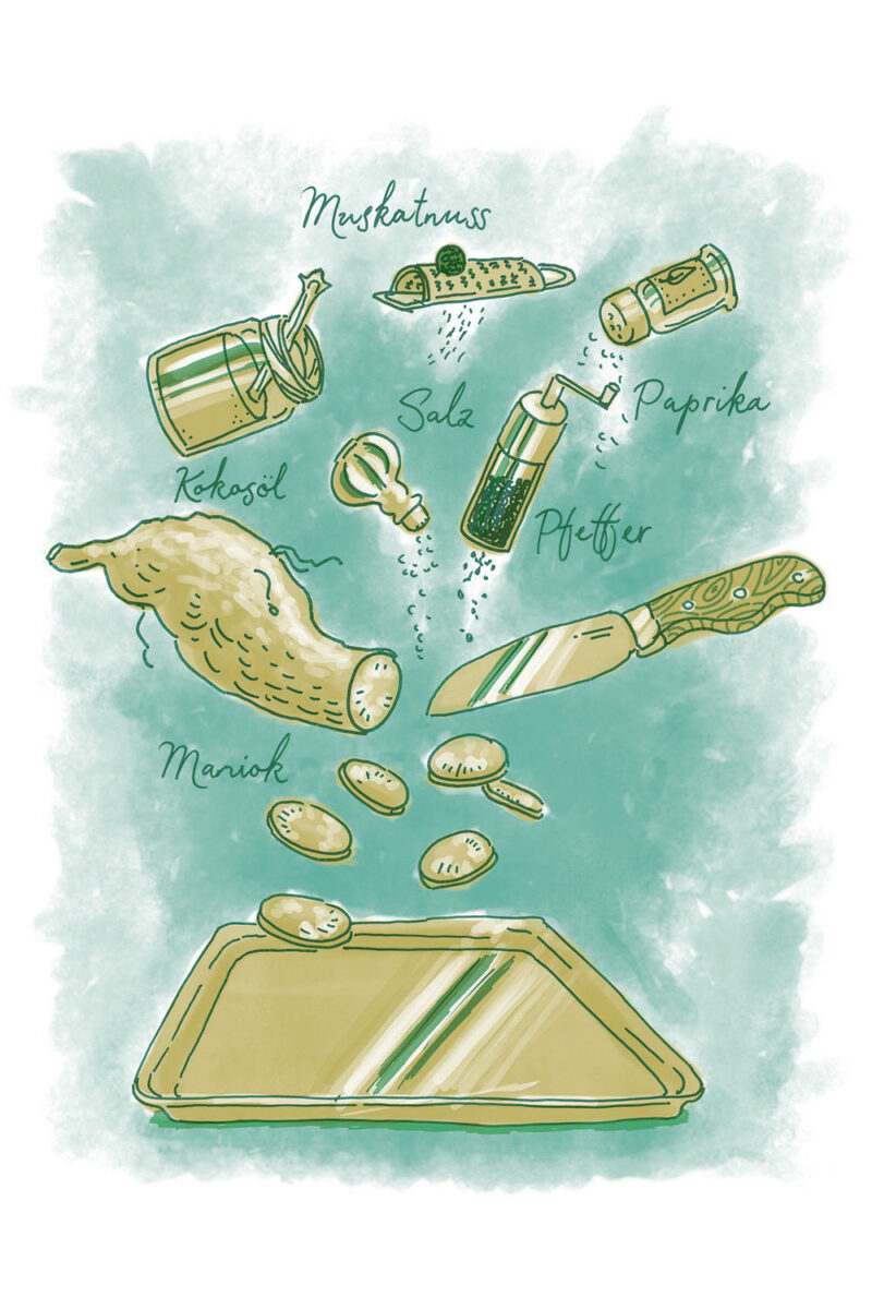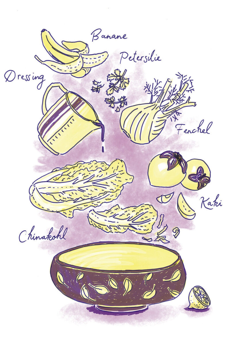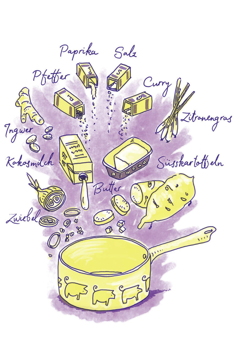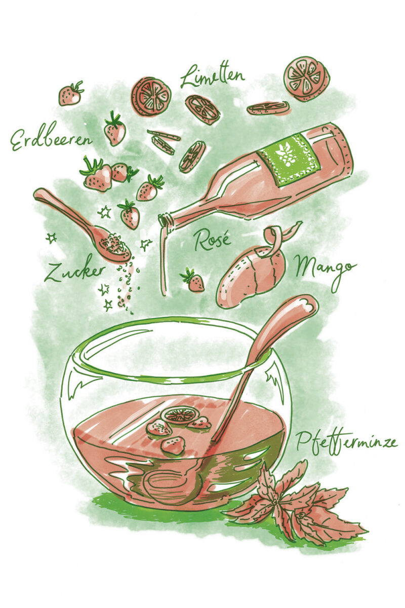 Konzept/Gestaltung: Das Herausschälen der Alleinstellungsmerkmale führte zu einem lockeren, farbenfrohen Illustrationsstil, der Lebensfreude versprüht. Er inspiriert zum Experimentieren und Festhalten eigener Ideen und Skizzen auf den leeren Farbseiten im Anschluss an die Rezeptsammlung.