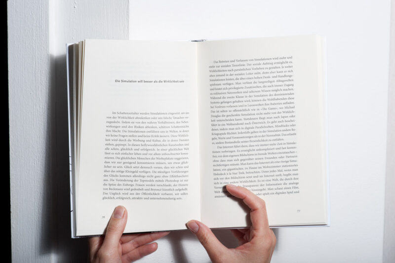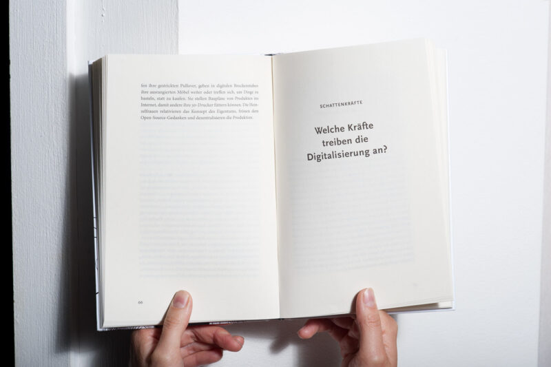 Abgesehen von den Verlagsvorgaben (Format, Materialien, Bindung) war eine angenehme Lesbarkeit prioritär, sowie überraschende, vielseitig interpretierbare Umschlagsujets, die von den Klischeebildern zum Thema «Internet» abweichen.