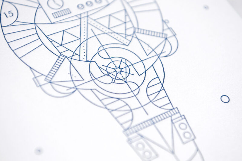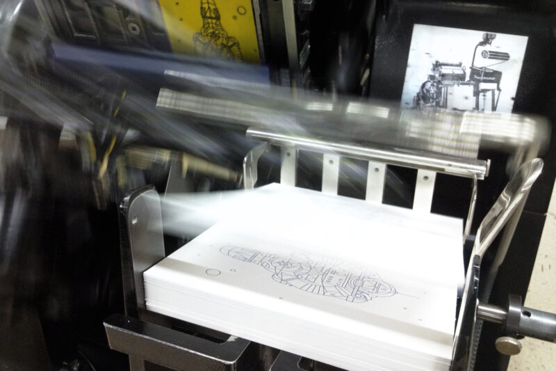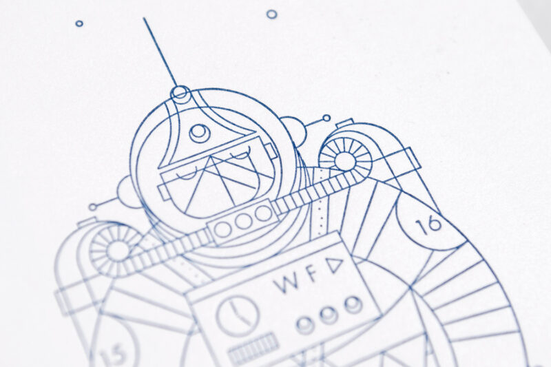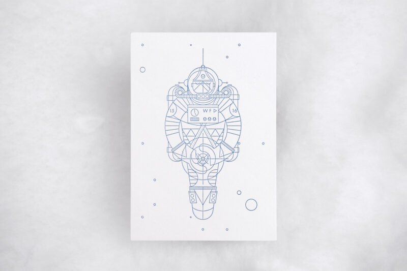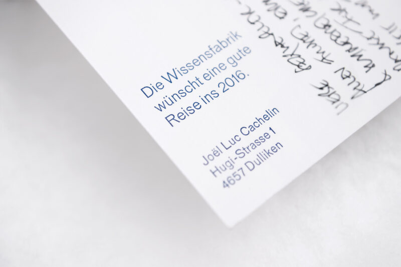 Die Karte wurde im Bleisatz (Letterpress) gefertigt. Weitere Neujahrskarten für den Zukunftsforscher entstanden 2017 und 2018.